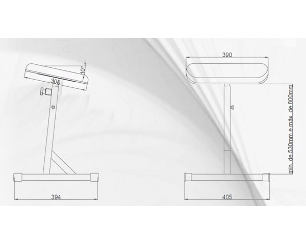 - Altura mínima de 530mm e máxima de 800mm