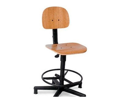 Assento e encosto em madeira tratada, regulagem de altura a gás, regulagem do apoio de pé.