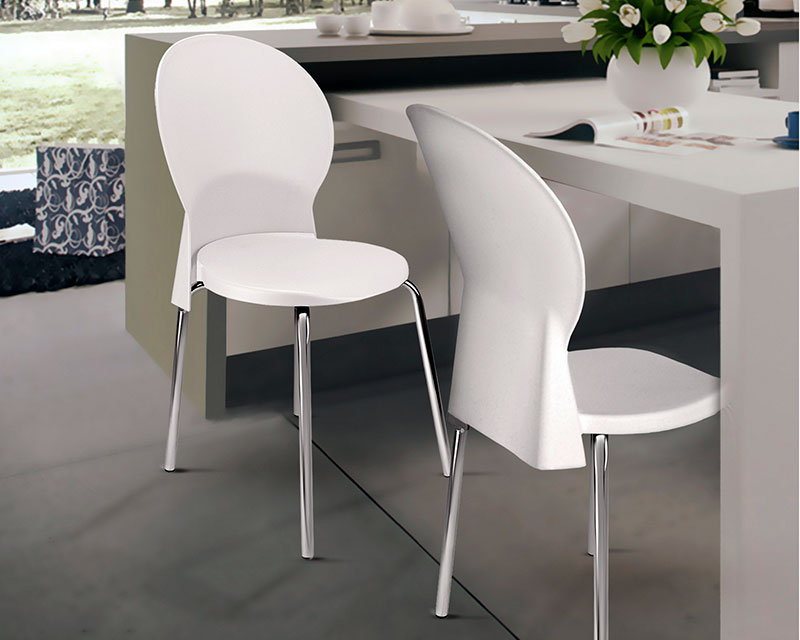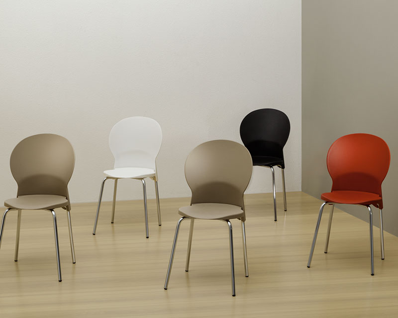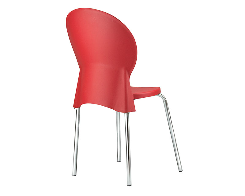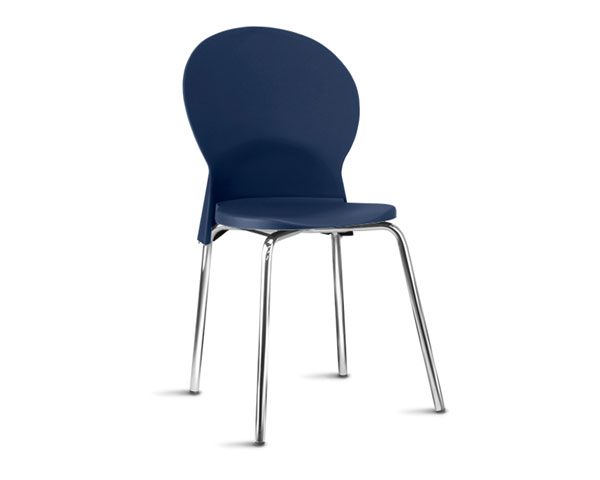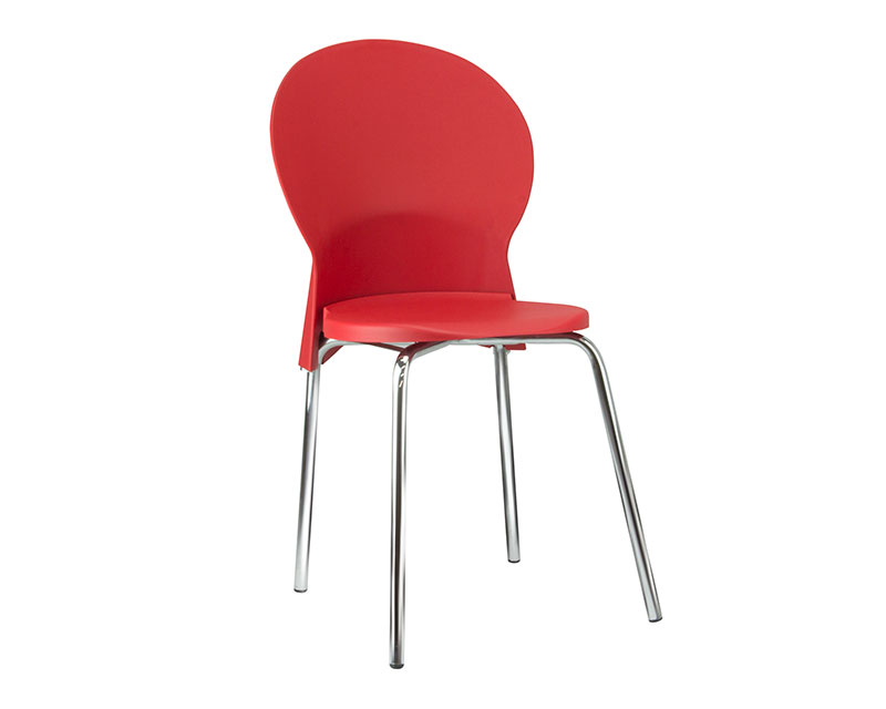 Cadeira plástica para uso múltiplo e coletividade, com assento e encosto injetados em polipropileno, 100% reciclável e estruturado em base tipo 04 pés, em tubo de aço carbono de secção circular, com acabamento cromado e ponteiras injetadas em polipropileno para contato com a superfície do piso.