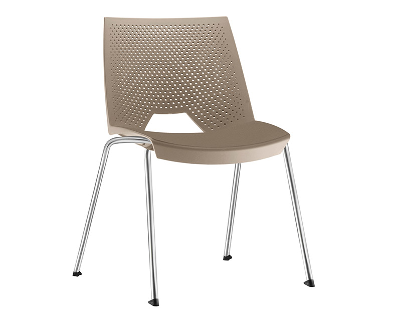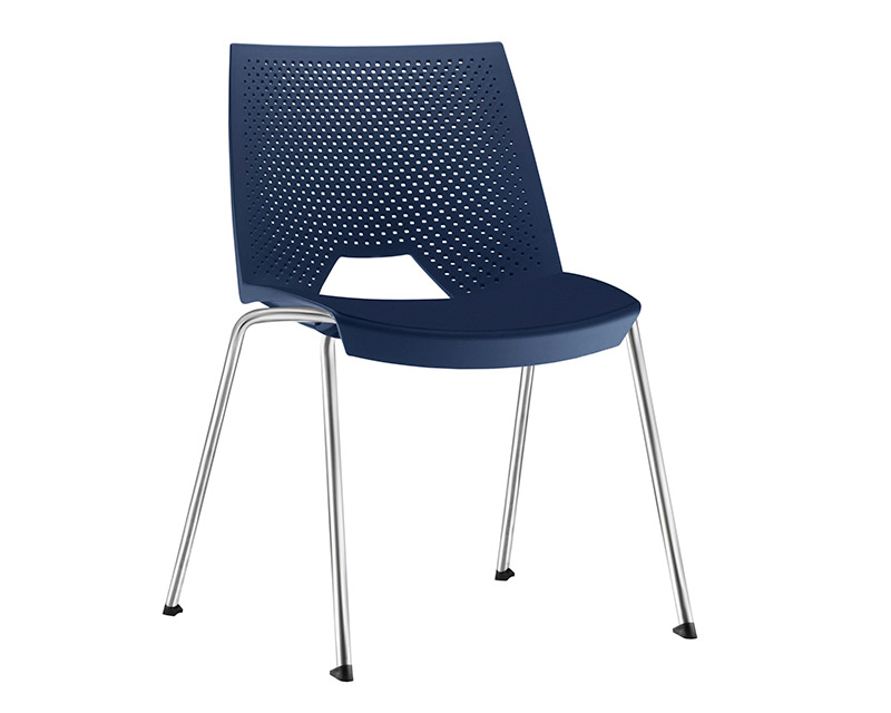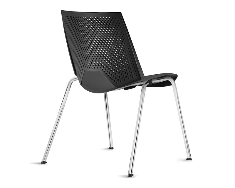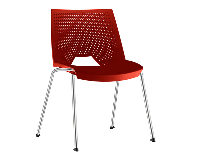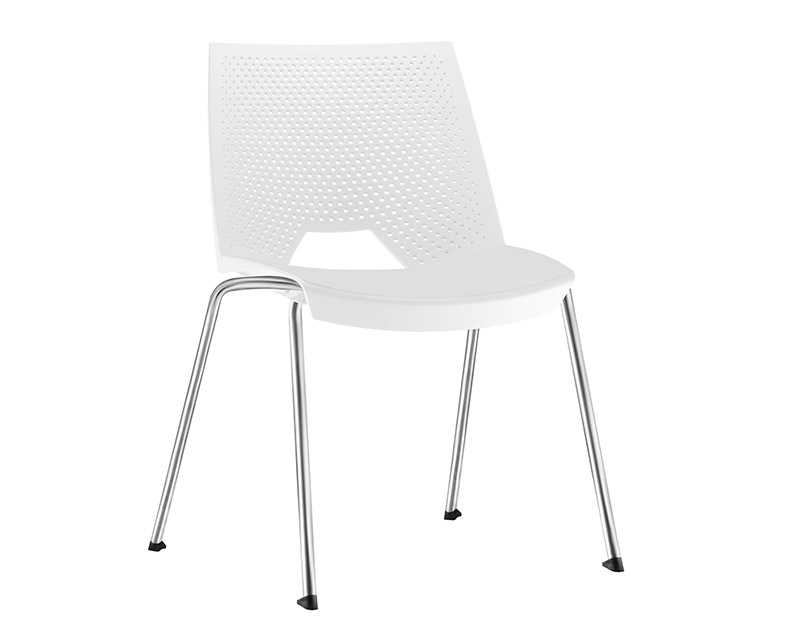 Cadeira de coletividade e uso múltiplo, empilhável, com assento e encosto monobloco, injetado em polipropileno, estrutura 04 pés fabricada em tubo de aço carbono Ø 3/4" com parede de 1,90 mm. Acabamento da estrutura cromada. Sapatas injetadas em polipropileno.