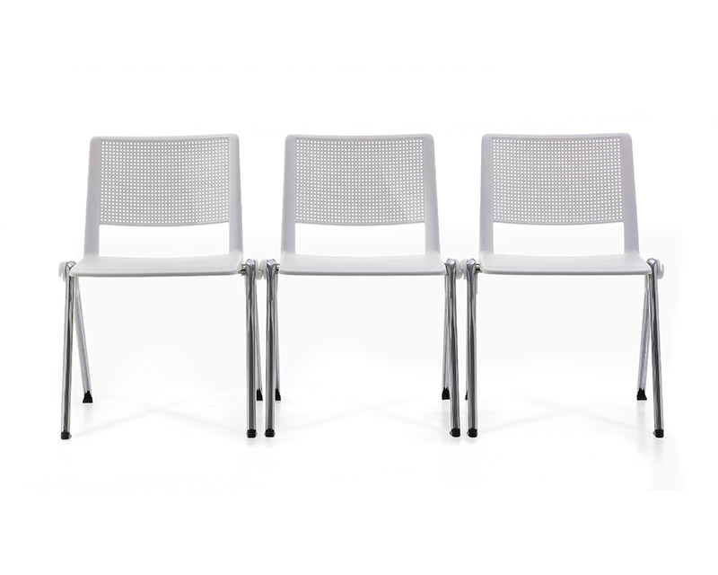 Cadeira para uso múltiplo com design premiado internacionalmente, empilhável, assento e encosto disposto em monobloco injetados em polipropileno, 100% reciclável, estrutura 4 pés, formada por tubo de aço carbono cilíndrico, conformado em forma de “V” com diâmetro de 25,4 mm, acabamento cromada. Sapatas injetadas em polipropileno.