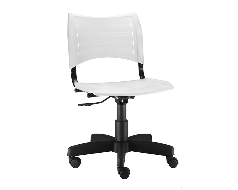 Assento e encosto em polipropileno diversas cores, regulagem de altura a gás, estrutura preta.