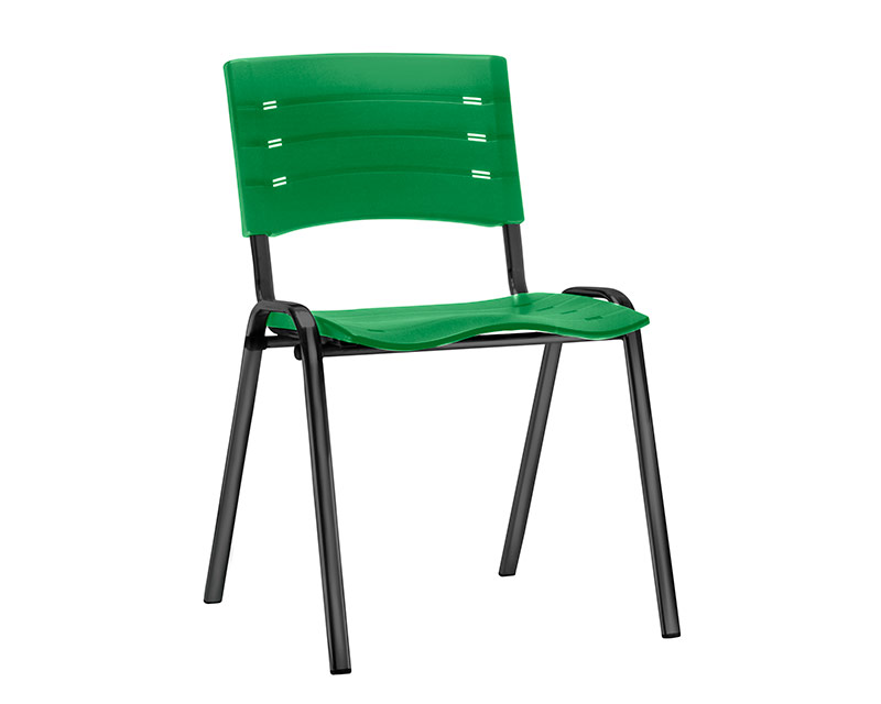 Assento e encosto em polipropileno diversas cores, estrutura em aço na cor preta.