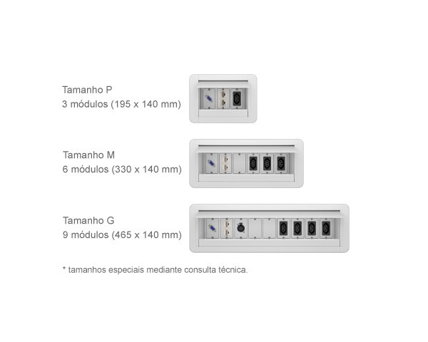 Disponível em 3 formatos: 3, 6 ou 9 módulos, ou tamanhos especiais mediante consulta técnica.