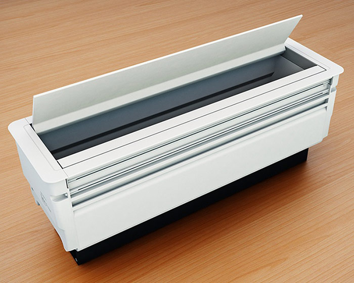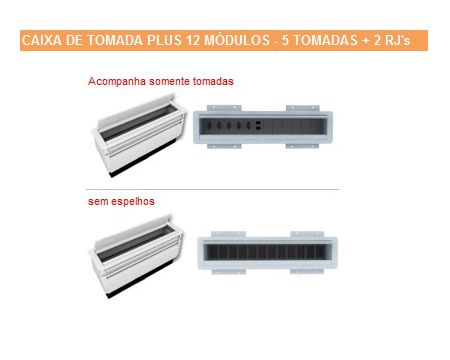 O sistema conta com tomadas de eletrificação que atendem a norma brasileira NBR 14136, aos sistemas de dados padrão Systimax ou Furukawa, conectores multimídia, HDMI, USB e microfone XLR. Projetada em alumínio pintado com peças injetadas em nylon para melhor resistência e durabilidade, podendo ser utilizada nos mais diversos tipos de escritório.