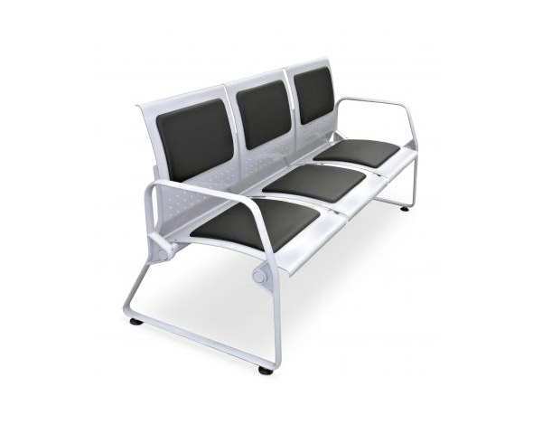 Longarina metálica de alta performance, com pintura epóxi a pó resistente a riscos, assento e encosto injetados em PU garantem maior conforto. Indicada para ambientes com grande fluxo, como aeroportos e hospitais.
