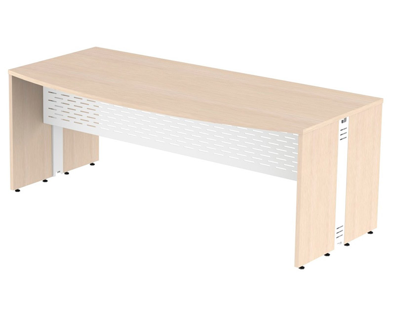 Pés por baixo confeccionados no mesmo material do tampo em 25mm com fita de 1mm com calha de fiação.