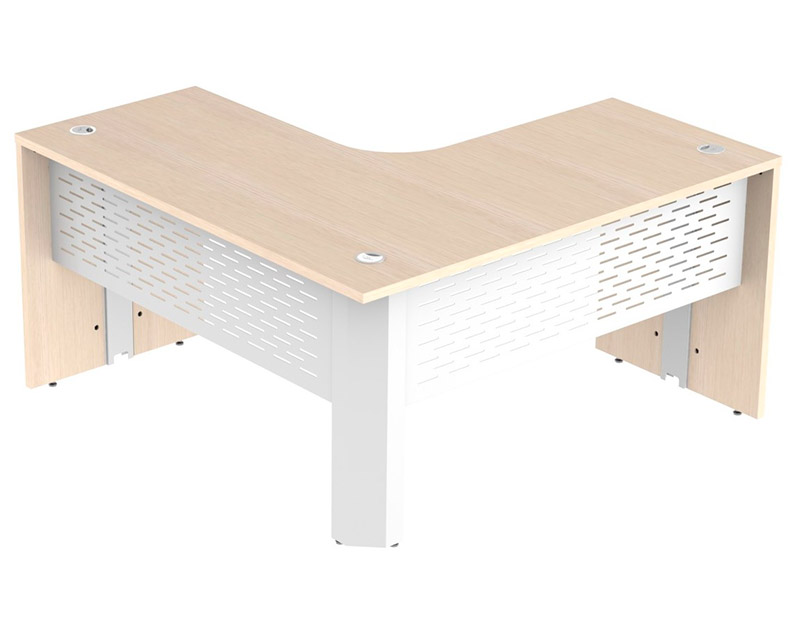 Tampo e pé painel confeccionados em melamínico BP 25mm, recebe fita de borda 2mm em todo o seu contorno.