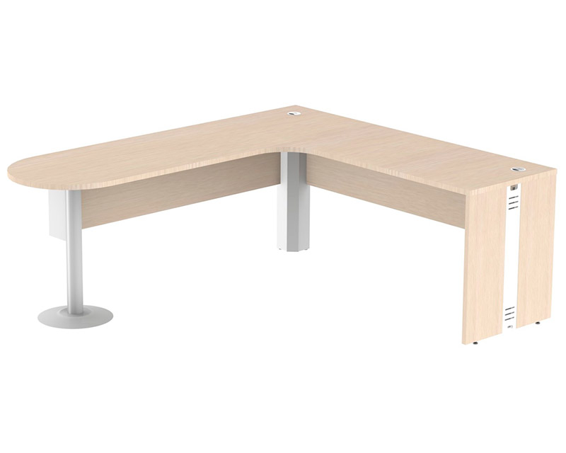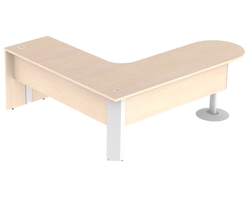 Tampo e pé painel confeccionados em melamínico BP 25mm, recebe fita de borda 2mm em todo o seu contorno.