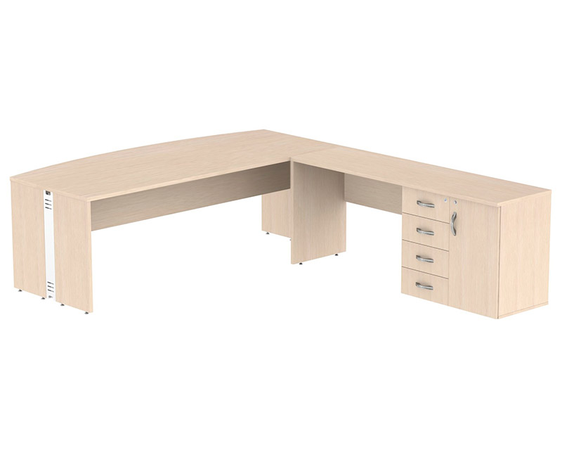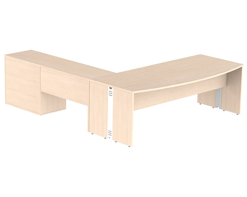Tampo e pé painel confeccionados em melamínico MDP 25mm, recebe fita de borda 2mm em todo o seu contorno.