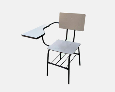 Fórmica nas cores branca, bege claro ou cinza claro, estrutura tubular 3/4, com porta livros, pintura eletrostática epóxi a pó na cor preta.