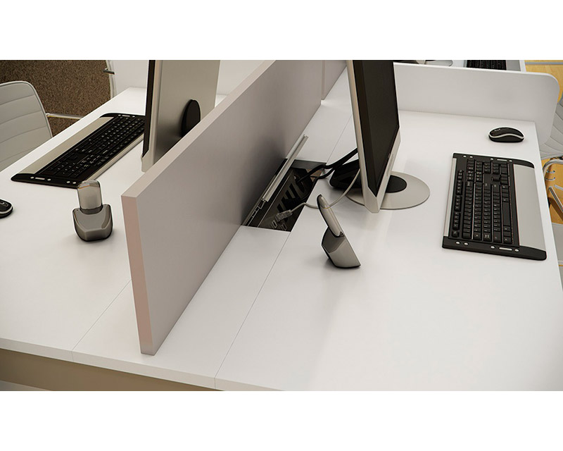 Calha para fiação, tampa em alumínio com acesso a 4 pontos de energia e 4 pontos de rede.
