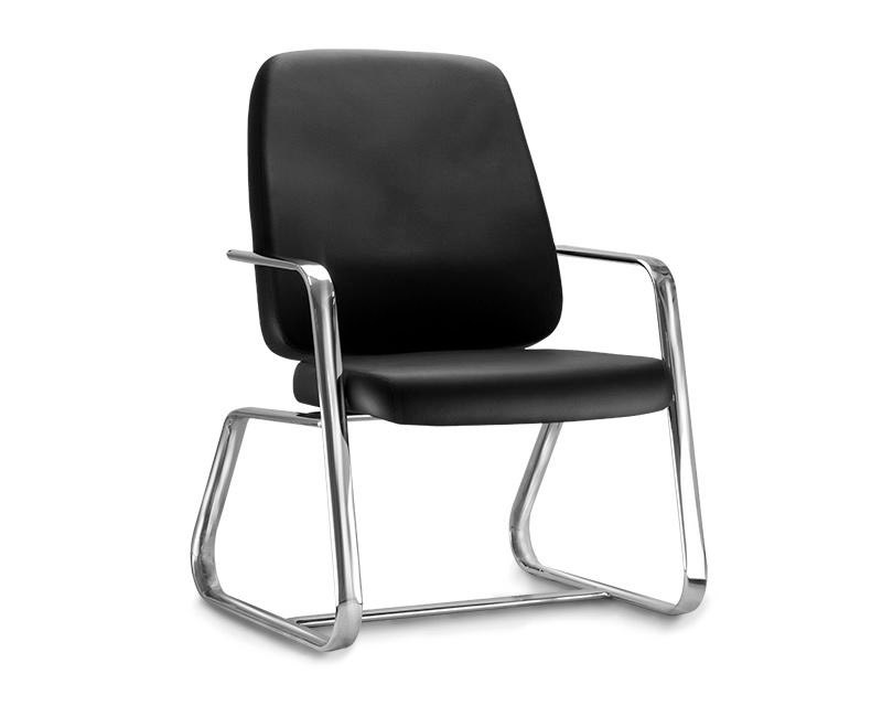 Poltrona de alta robustez, assento e encosto estruturados em compensado multilaminado de alta espessura, reforçados com elementos metálicos e estofados com espuma flexível de poliuretano, moldada, de alta densidade, alta resiliência e isenta de CFC. Braços e base em tubos de aço de secção elíptica, com acabamento cromado.